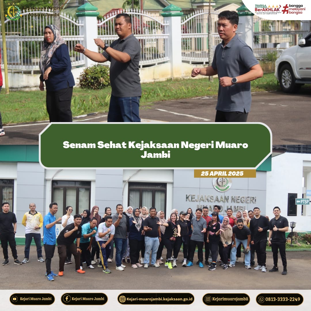 Kejaksaan Negeri Muaro Jambi melaksanakan kegiatan Senam Sehat bersama, yang di ikuti oleh Kajari Muaro Jambi dan seluruh pegawai. Bertempat di halaman kantor Kejaksaan Negeri Muaro Jambi.