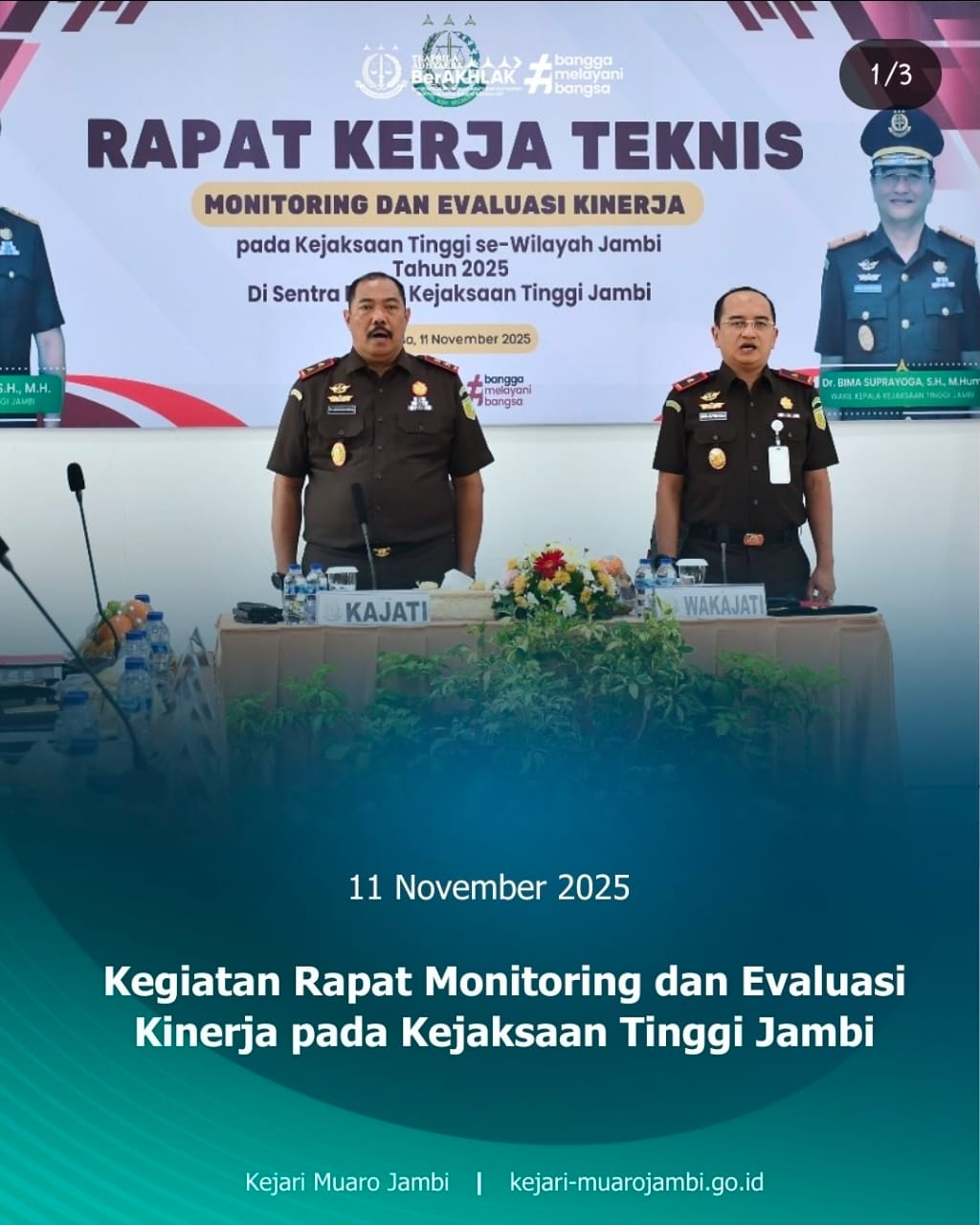 Kejaksaan Negeri Muaro Jambi turut hadir dalam kegiatan Rapat Kerja Teknis Monitoring dan Evaluasi Capaian Kinerja dan Penyerapan Anggaran, yang di...