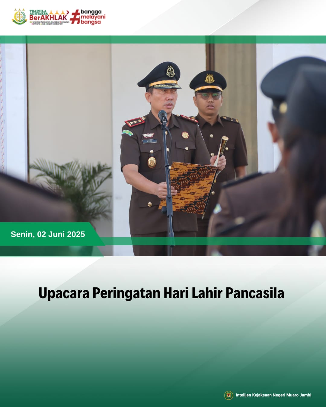 Kepala Kejaksaan Negeri Muaro Jambi Heru Anggoro, SH.,MH pimpin Upacara Peringatan Hari Lahir Pancasila ke-80 yang bertem...